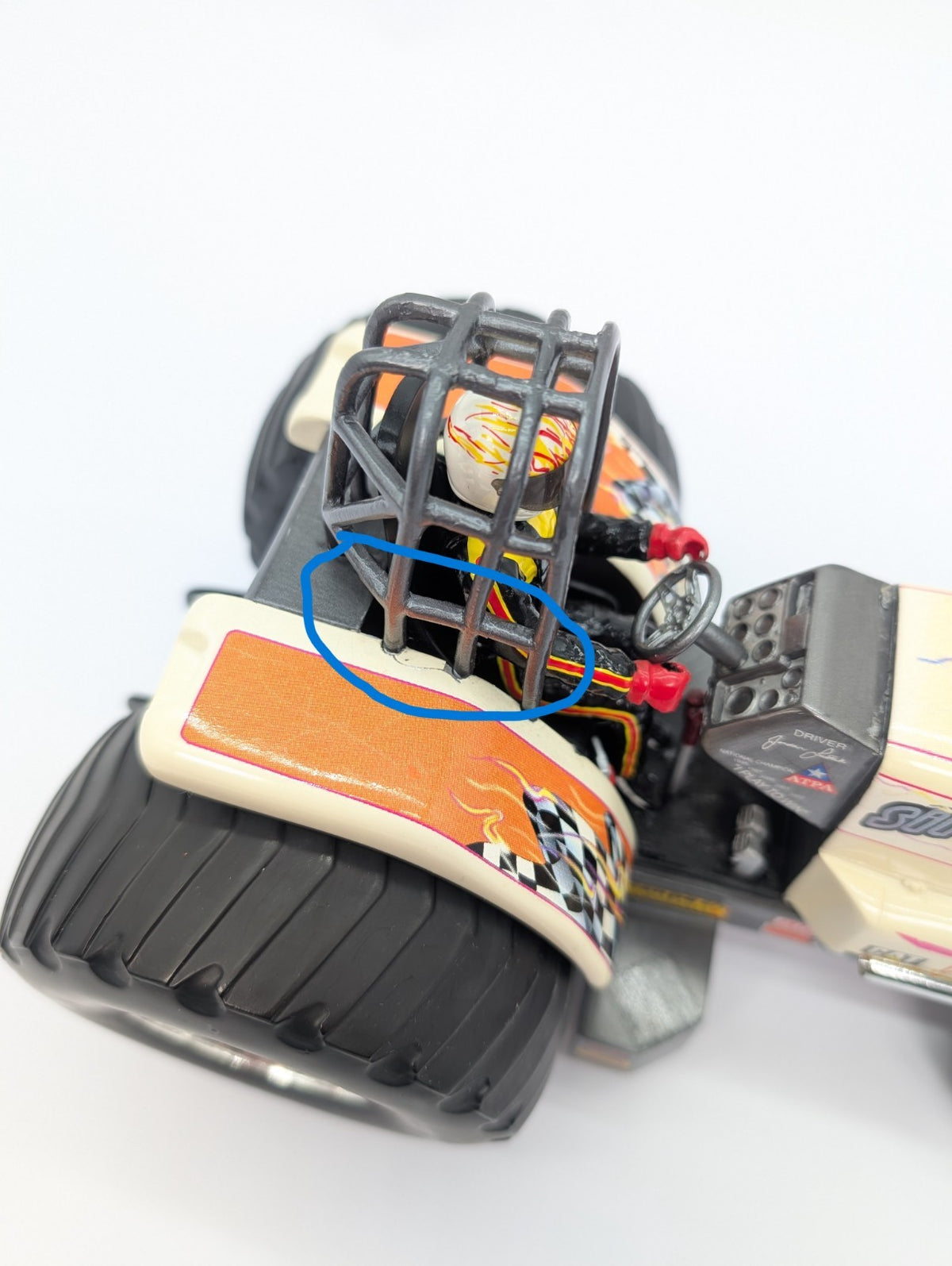 Small fracture by the roll cage as seen in the photo.